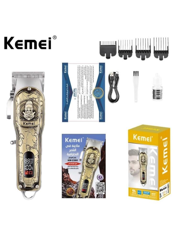 Kemei KM-2380 – ماكينة حلاقة رجالية احترافية، شحن USB وتصميم عملي متعدد الاستخدام