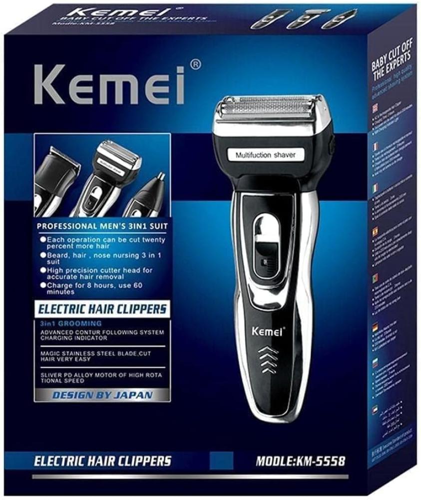 Kemei KM-5558 – ماكينة حلاقة 3 في 1 للرجال، كهربائية للحلاقة الجافة، متعددة الوظائف واحترافية