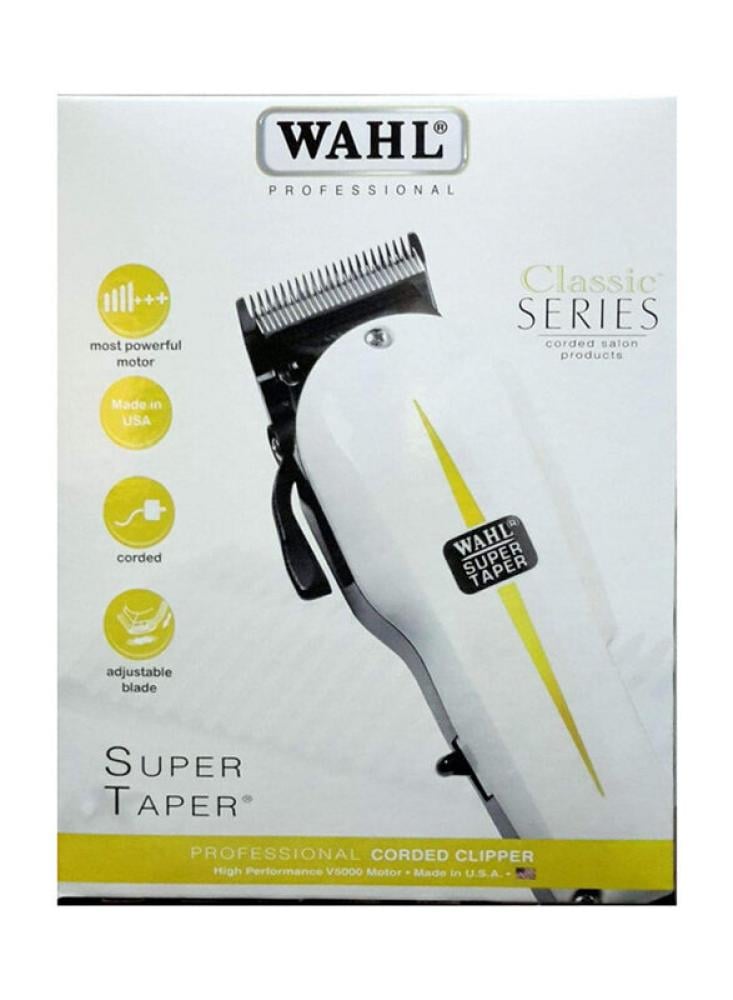 WAHL Super Taper 8591 – ماكينة قص شعر احترافية سلكية بلون أبيض مثالية للحلاقين والاستخدام المنزلي